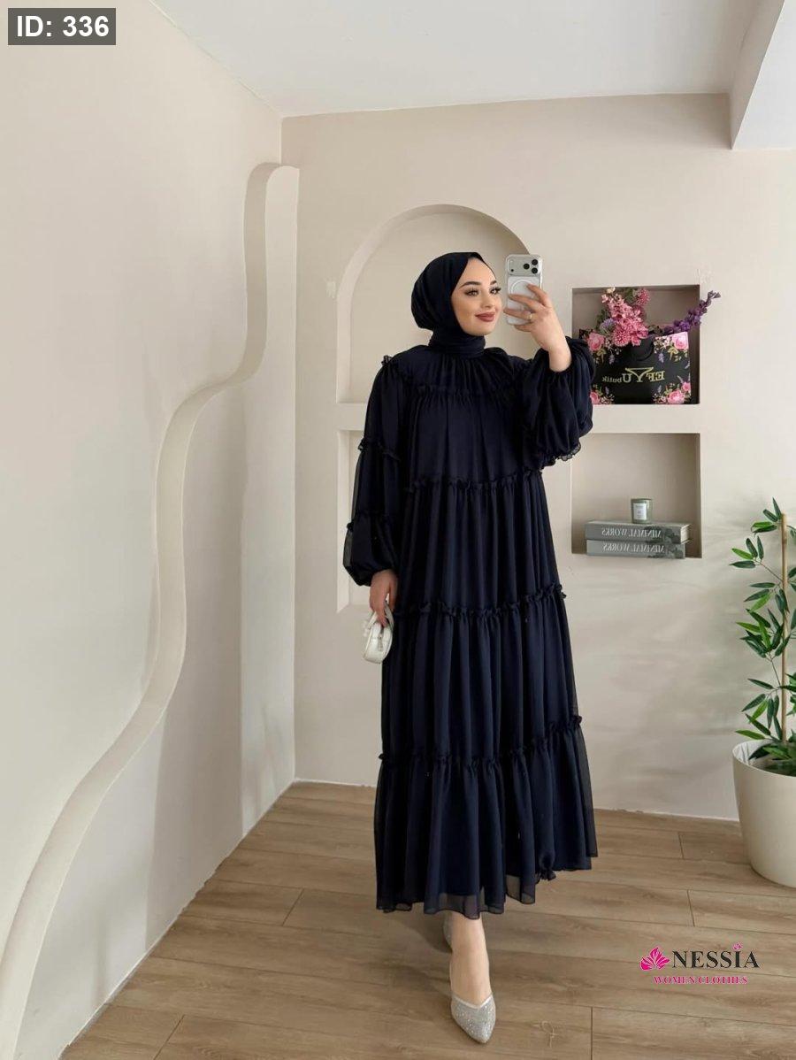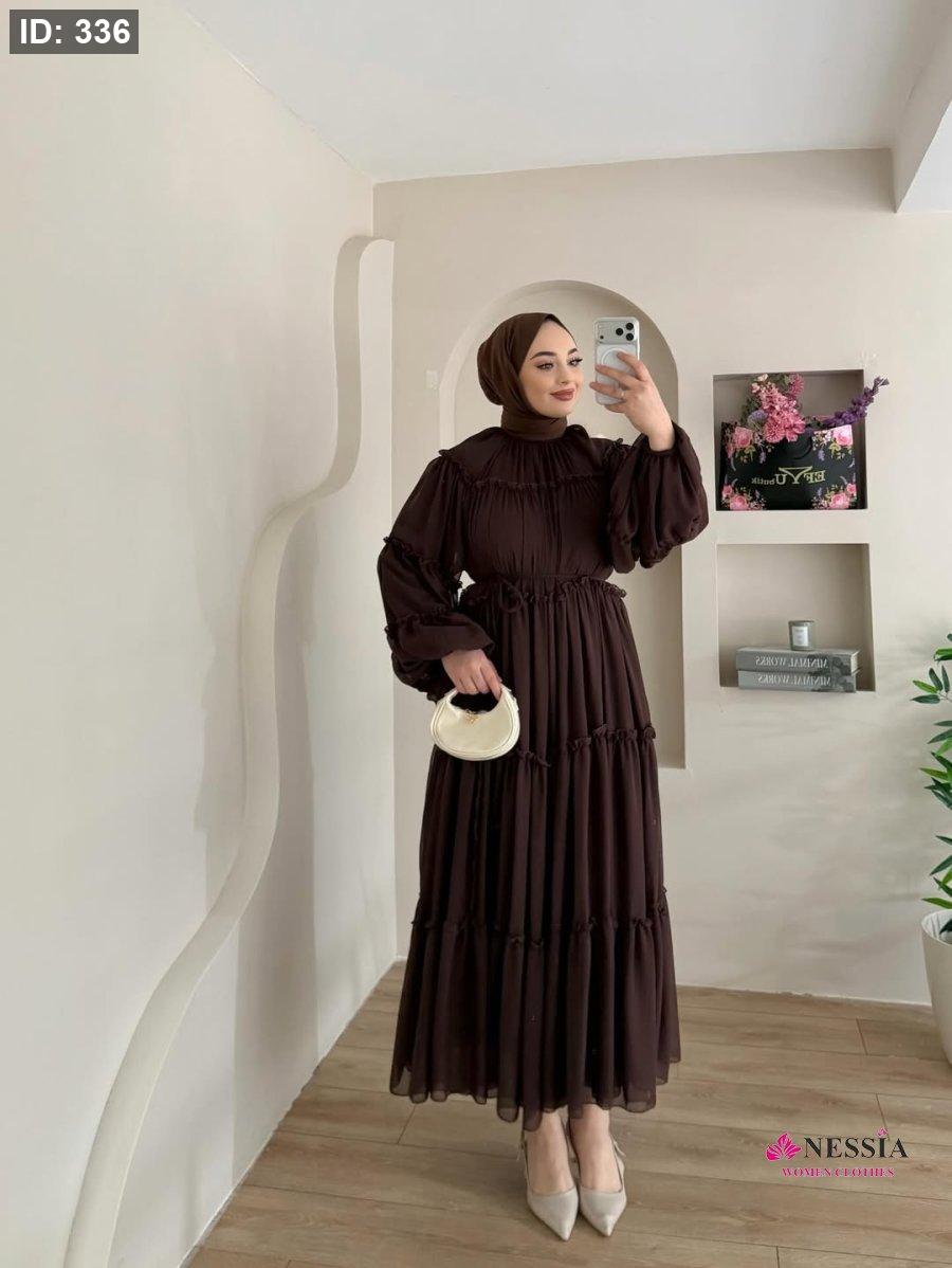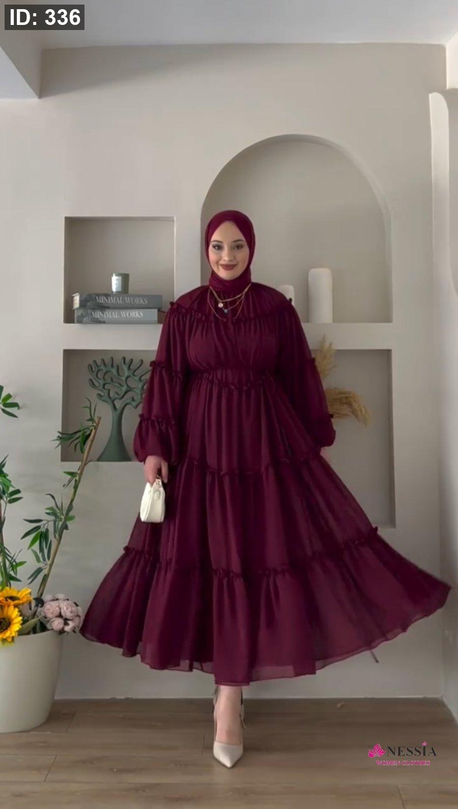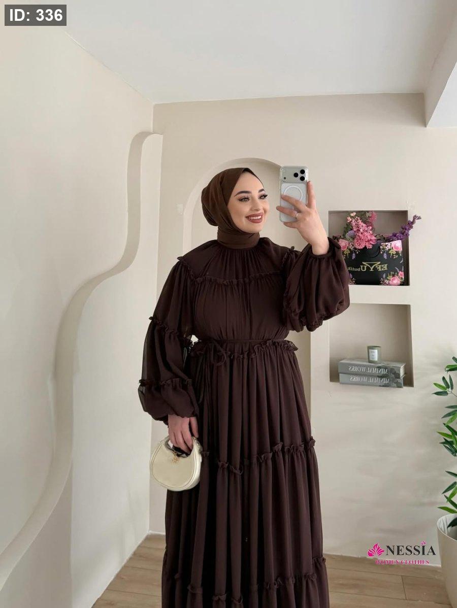 فستان "سديم" الشيفون الطبقات – عنوان الأنوثة والرقي تألقي بإطلالة ساحرة مع فستاننا الجديد المصنوع من أجود أنواع قماش الشيفون الناعم. يتميز هذا الفستان بتصميمه الانسيابي الذي يجمع بين الحشمة والعصرية، مما يجعله الخيار الأول للمناسبات السعيدة والزيارات الراقية. تفاصيل التصميم: • قصّة الطبقات (Tiered Design): الفستان مصمم بنظام الطبقات المتعددة التي تمنحه حجماً رائعاً وحركة انسيابية (كلوش واسع) عند المشي. • أكمام ملكية: أكمام طويلة واسعة تنتهي بزمّة أنيقة، مع تفاصيل "الكشكش" الناعم التي تضفي لمسة من الفخامة. • ياقة مرتفعة: تصميم الرقبة المرتفعة (High Neck) يمنحكِ مظهراً محتشماً وراقياً جداً، خاصة مع تنسيق الحجاب. • خصر محدد: مزود برباط خصر نحيف لتحديد القوام وإبراز جمال التصميم حسب الرغبة. الألوان المتاحة (تشكيلة ألوان غنية): نوفر لكِ هذا التصميم بمجموعة ألوان تناسب كل الأذواق والمواسم: • الأسود الملكي: للأناقة المطلقة التي لا تغيب. • البوردو (الخمري العميق): لإطلالة دافئة وجذابة. • البني الشوكولاتة: لون عصري وفخم جداً لهذا الموسم. • الكحلي الليلي: بديل راقٍ للأسود بلمسة كلاسيكية. • الوردي الناعم (Dusty Pink): لإطلالة مفعمة بالأنوثة والهدوء. • الأصفر الليموني البارد: خيار منعش ومميز للمناسبات النهارية. لماذا تختارين هذا الفستان؟ لأنه خفيف على الجسم بفضل بطانته الناعمة وقماش الشيفون المسامي، ولأنه "قطعة كاملة" لا تحتاجين معها إلا لإكسسوارات بسيطة لتكوني جاهزة.