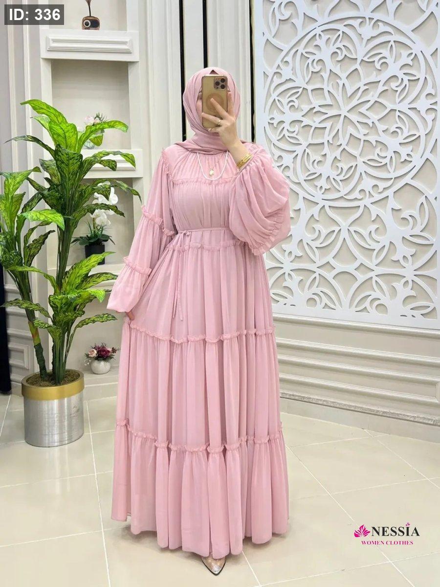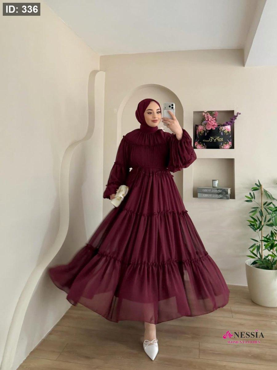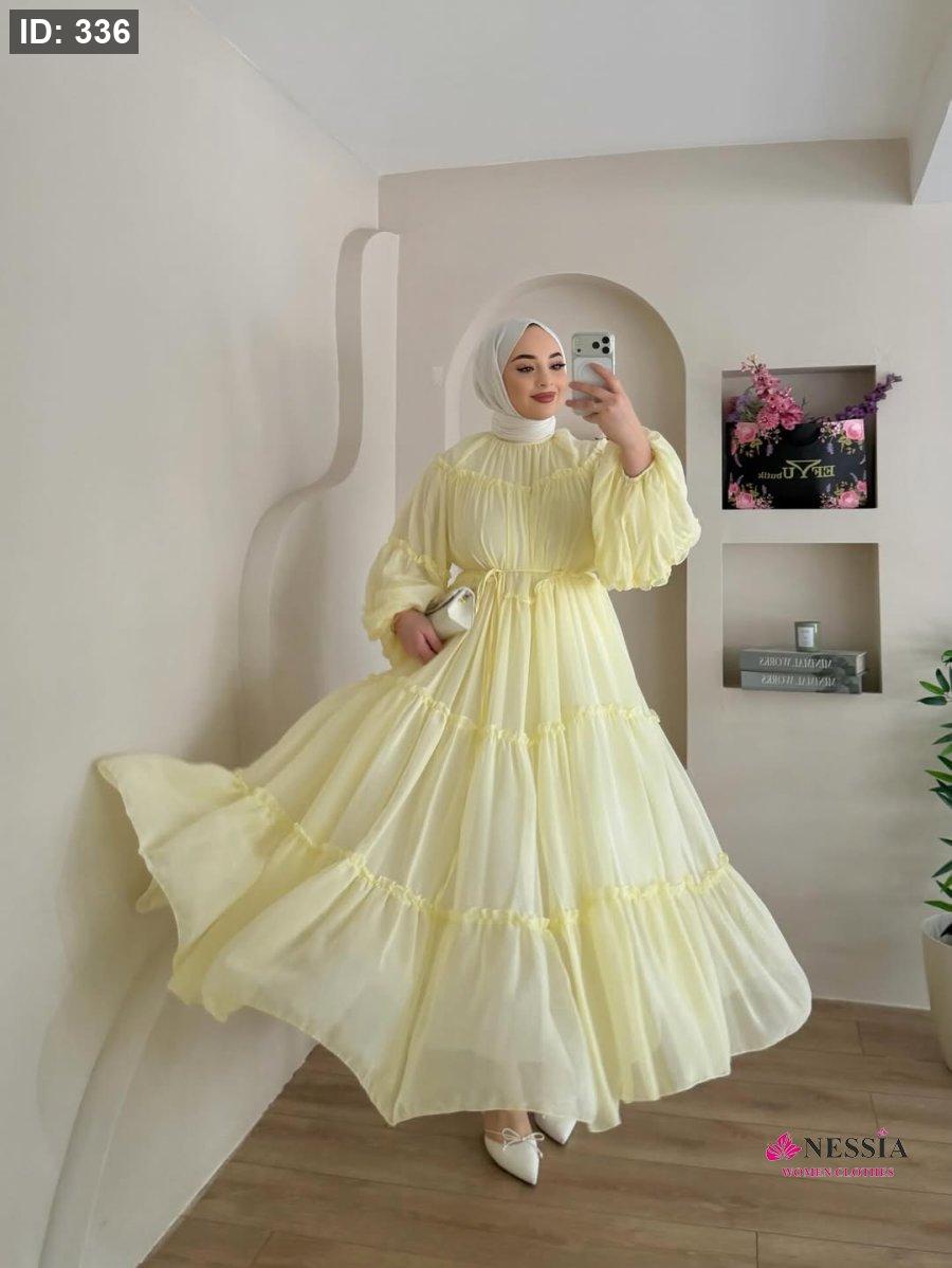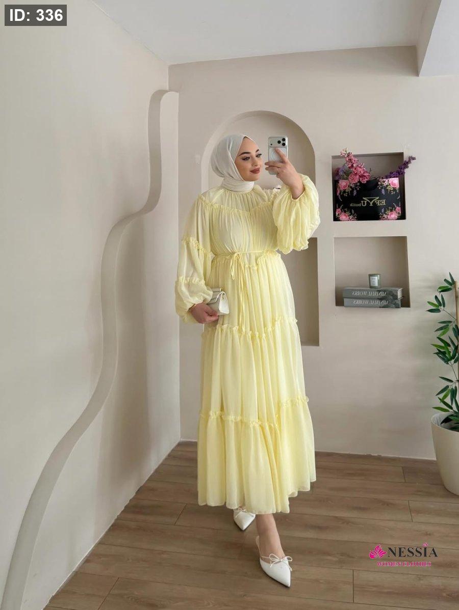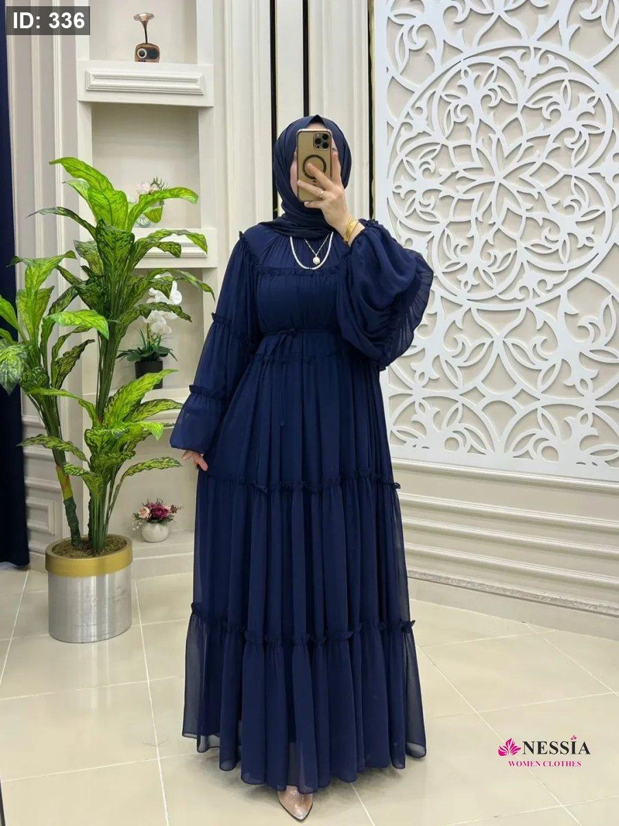فستان "سديم" الشيفون الطبقات – عنوان الأنوثة والرقي تألقي بإطلالة ساحرة مع فستاننا الجديد المصنوع من أجود أنواع قماش الشيفون الناعم. يتميز هذا الفستان بتصميمه الانسيابي الذي يجمع بين الحشمة والعصرية، مما يجعله الخيار الأول للمناسبات السعيدة والزيارات الراقية. تفاصيل التصميم: • قصّة الطبقات (Tiered Design): الفستان مصمم بنظام الطبقات المتعددة التي تمنحه حجماً رائعاً وحركة انسيابية (كلوش واسع) عند المشي. • أكمام ملكية: أكمام طويلة واسعة تنتهي بزمّة أنيقة، مع تفاصيل "الكشكش" الناعم التي تضفي لمسة من الفخامة. • ياقة مرتفعة: تصميم الرقبة المرتفعة (High Neck) يمنحكِ مظهراً محتشماً وراقياً جداً، خاصة مع تنسيق الحجاب. • خصر محدد: مزود برباط خصر نحيف لتحديد القوام وإبراز جمال التصميم حسب الرغبة. الألوان المتاحة (تشكيلة ألوان غنية): نوفر لكِ هذا التصميم بمجموعة ألوان تناسب كل الأذواق والمواسم: • الأسود الملكي: للأناقة المطلقة التي لا تغيب. • البوردو (الخمري العميق): لإطلالة دافئة وجذابة. • البني الشوكولاتة: لون عصري وفخم جداً لهذا الموسم. • الكحلي الليلي: بديل راقٍ للأسود بلمسة كلاسيكية. • الوردي الناعم (Dusty Pink): لإطلالة مفعمة بالأنوثة والهدوء. • الأصفر الليموني البارد: خيار منعش ومميز للمناسبات النهارية. لماذا تختارين هذا الفستان؟ لأنه خفيف على الجسم بفضل بطانته الناعمة وقماش الشيفون المسامي، ولأنه "قطعة كاملة" لا تحتاجين معها إلا لإكسسوارات بسيطة لتكوني جاهزة.