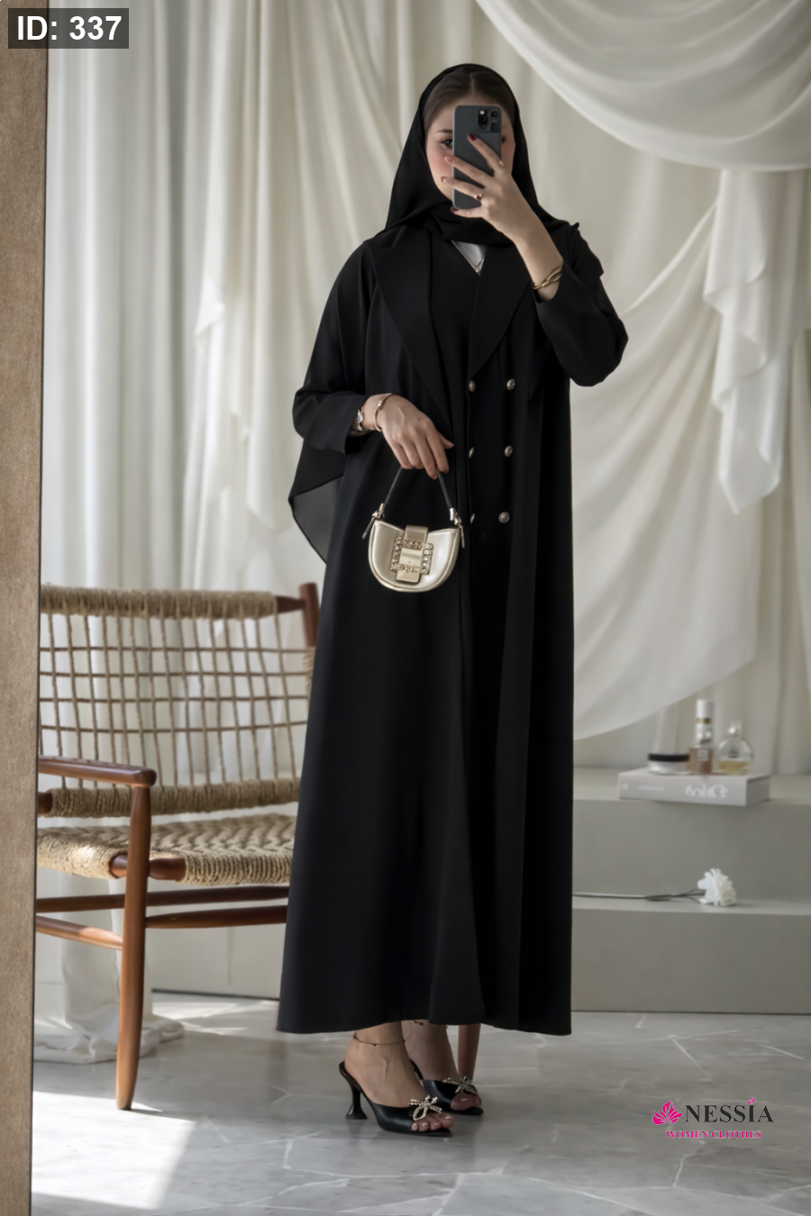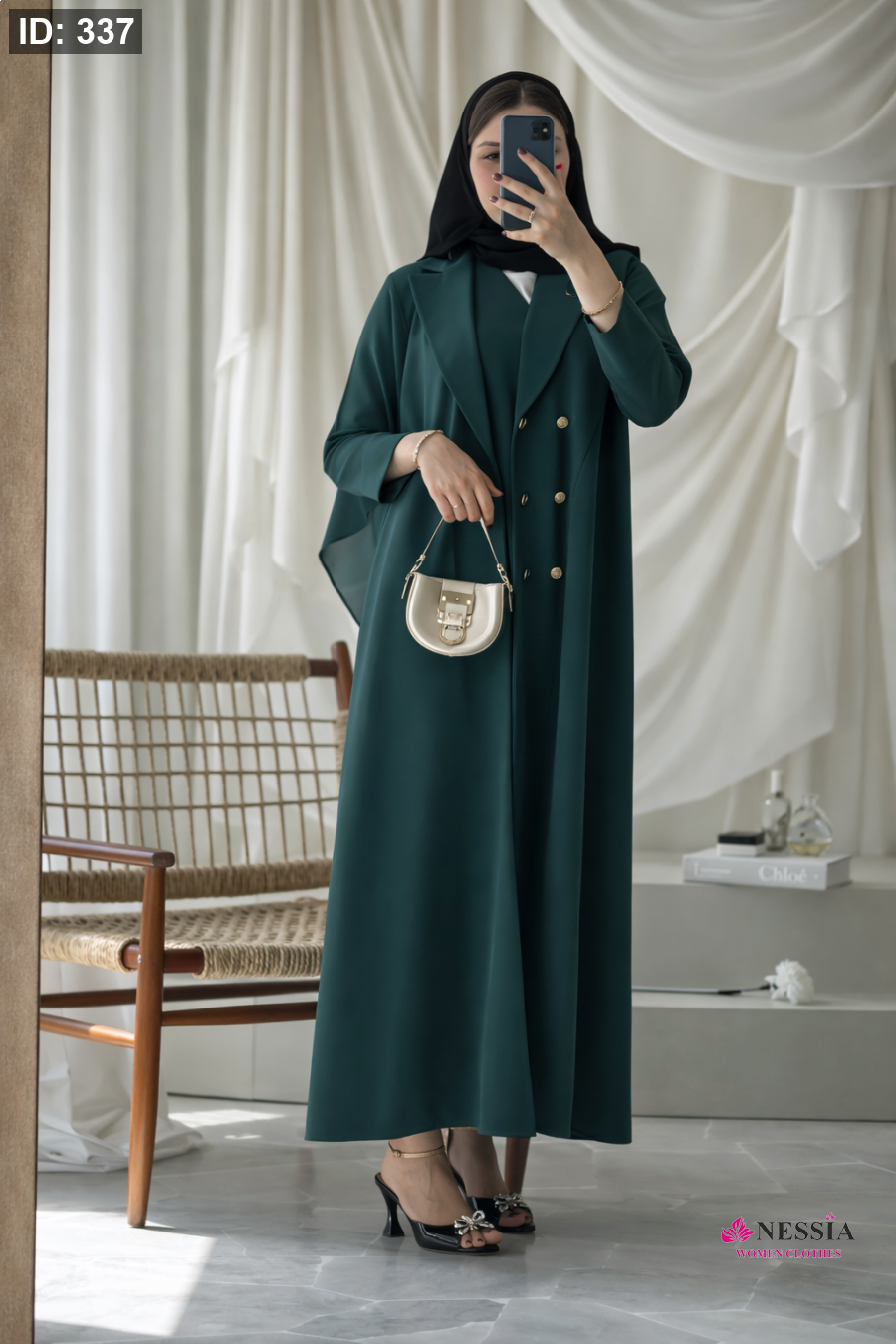 تألقي بإطلالة تجمع بين الأناقة الرسمية والعصرية مع هذه العباية المستوحاة من قصة "البليزر" الشهيرة. صُممت بياقة عريضة (Lapel) وأزرار مزدوجة تضفي طابعاً من الرقي والقوة. مثالية للمناسبات الرسمية، العمل، أو حتى خروجاتك اليومية الفاخرة. • القصة: بليزر (Blazer Cut) بياقة رسمية. • القماش: كريب ملكي عالي الجودة، يمنحك وقفة ثابتة ومريحة طوال اليوم. • التفاصيل: أزرار ذهبية أمامية تعطي لمسة من الفخامة. الألوان المتاحة (Available Colors): تأتي هذه المجموعة بتشكيلة ألوان مختارة بعناية لتناسب جميع الأذواق والمناسبات: • الأسود الملكي: الفخامة التقليدية التي لا تنتهي، الخيار الأول للمناسبات الرسمية. • الأخضر الجنزاري (Deep Teal): لون يجمع بين الرقي والتميز، يعطي انطباعاً بالثقة والهدوء. • الكاكي (Khaki): لمسة "مودرن" وعملية جداً، مثالية للدوامات والخروجات الصباحية الأنيقة. • البني الكلاسيكي (Rich Brown): لون دافئ وفخم، يمنحكِ إطلالة ترابية ناعمة وجذابة.
