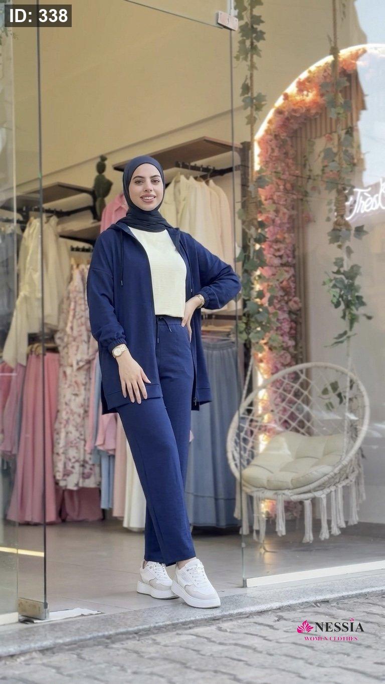 طقم رياضي نسائي قطعتين – إطلالة عصرية ومريحة تألقي بتصميم يجمع بين الأناقة العملية والراحة الفائقة. هذا الطقم المكون من قطعتين مصمم خصيصاً ليناسب أسلوب حياتك النشط، مع الحفاظ على مظهر محتشم وأنيق في آن واحد. مواصفات التصميم: • الجاكيت: يتميز بقصة مريحة (Oversized) مع سحاب أمامي كامل وقبعة (هودي) مزودة بأربطة، مما يجعله مثالياً لمختلف الأجواء. • البنطلون: يأتي بخصر مرن وقصة أرجل مستقيمة وواسعة لضمان حرية الحركة والراحة طوال اليوم. • الخامة: قماش عالي الجودة، ناعم على البشرة ويسمح بالتهوية، مما يجعله مناسباً للرياضة أو المشاوير اليومية. الألوان المتوفرة: يمكنكِ الاختيار من بين مجموعة من الألوان الجذابة التي تناسب ذوقك: • الرمادي الفاتح: لإطلالة هادئة وكلاسيكية. • الأسود: لخيارات تنسيق لا حصر لها ومظهر أنيق. • العنابي (البرغندي): لإضافة لمسة من الدفء والتميز. • الكحلي: لون عملي وعصري يناسب جميع الأوقات. مميزات المنتج: • تصميم مثالي للمحجبات بفضل التغطية الكاملة والقصة الواسعة. • مناسب للنادي الرياضي، السفر، أو الاسترخاء في المنزل. • سهل التنسيق مع الأحذية الرياضية المختلفة.