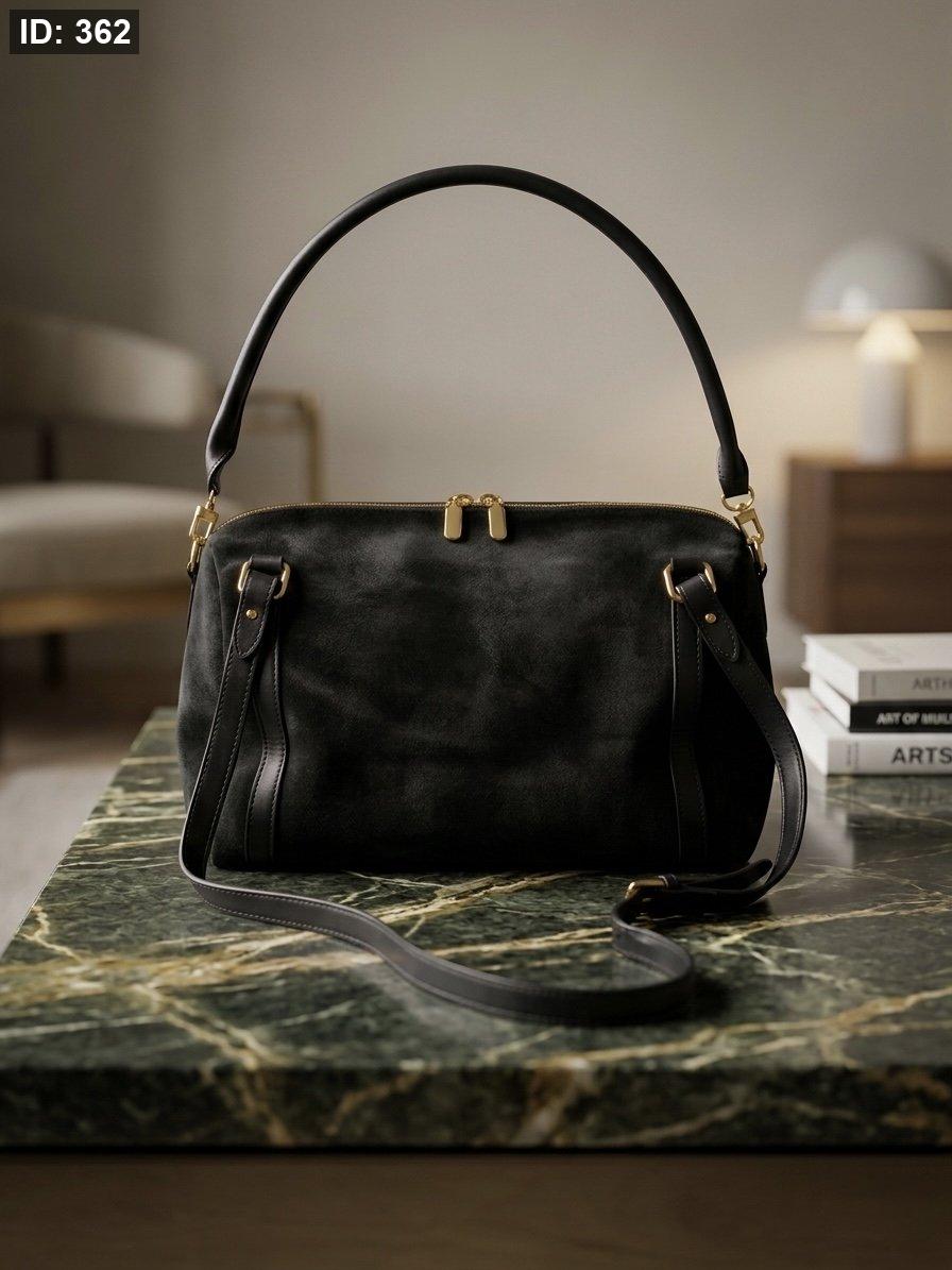 حقك عليّ، وضحت الصورة تماماً الآن. بما أن الخامة الأساسية هي الشمواه (Suede) مع تدعيمات بسيطة من الجلد في اليد والسيور، فهذا بيعطيها فخامة "دافئة" وملمس ناعم جداً بليق بطلّات الشتاء والخريف والربيع بشكل مثالي. إليك الوصف النهائي والدقيق لخامة الشمواه باللونين الأسود والبني: حقيبة "مخمل" – فخامة الشمواه وأناقة التفاصيل 🖤🤎 لأن الأناقة تبدأ من الملمس، اخترنا لكِ حقيبة "مخمل" بخامتها الساحرة وتصميمها الذي يجمع بين الرقيّ والعملية. قطعة فريدة تضفي لمسة مخملية دافئة على كل إطلالاتك. ما الذي يميز حقيبة الشمواه؟ • خامة الشمواه الراقية: جسم الحقيبة بالكامل من الشمواه الناعم الذي يعطي عمقاً فخماً للون، سواء في الأسود الملكي أو البني الدافئ. • لمسات جلدية متينة: اليد والسيور الجانبية مدعمة بجلد ناعم لضمان المتانة وسهولة التنظيف في أماكن الاستخدام المتكرر. • تناغم اللون والذهب: الإكسسوارات الذهبية اللامعة تبرز بوضوح فوق خامة الشمواه المطفية، مما يعطي انطباعاً بالفخامة "الهادئة". • حجم عملي ومثالي: تتسع لكل مقتنياتك اليومية بفضل تصميمها الواسع من الداخل وسحاباتها المزدوجة السهلة. تفاصيل الحقيبة: • الخامة الأساسية: شمواه (Suede) فاخر. • التدعيم: جلد ناعم لليد والسيور. • الألوان المتوفرة: الأسود العميق / البني الشوكولاتة. • طريقة الحمل: يدوي (Handheld) أو كروس (Crossbody) بحزام طويل.