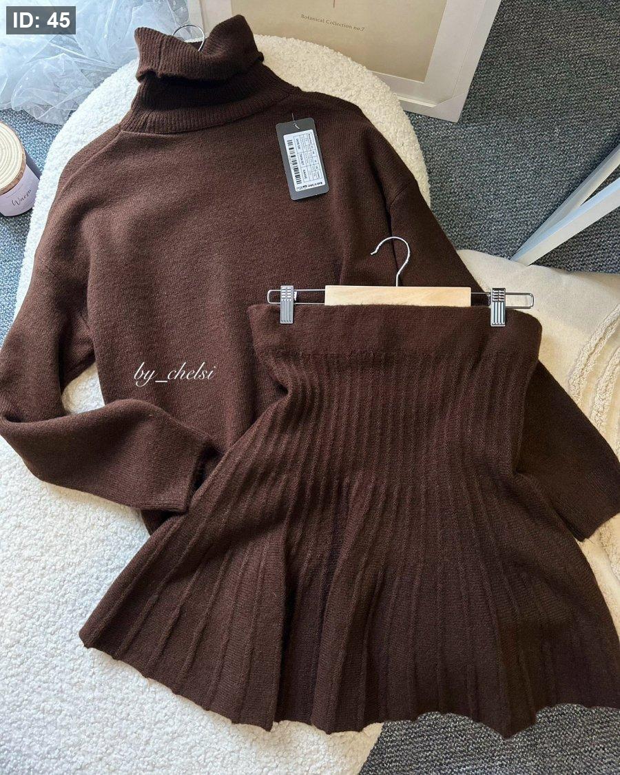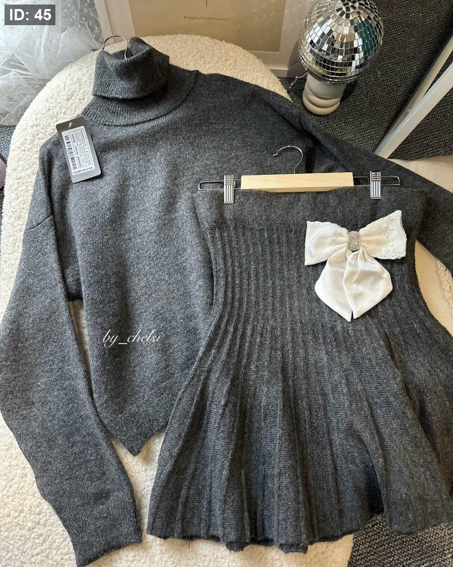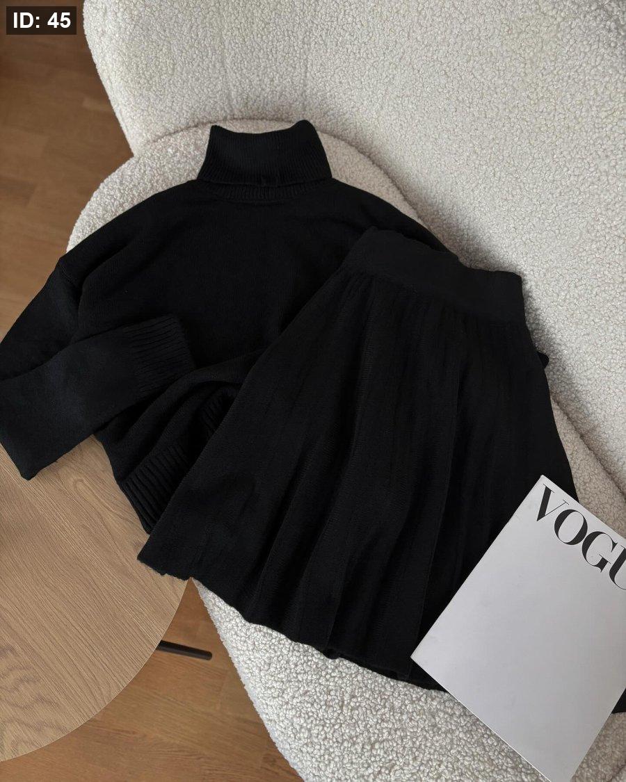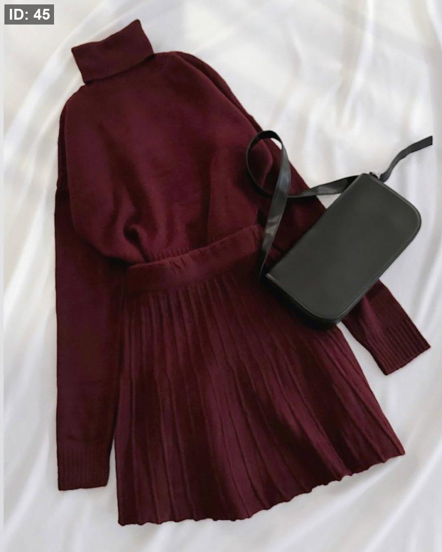 تنورة صوف قصيرة مع بلوزة